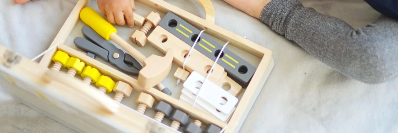 Mobiles Werkzeugset für KinderDas einzigartige Kinderwerkzeugset im Tragekoffer von Tooky Toy ermöglicht es Kindern, spielerisch Reparaturen in der ganzen Wohnung oder im Haus durchzuführen. Dank seiner kompakten Größe lässt es sich leicht auf Reisen mitnehmen.