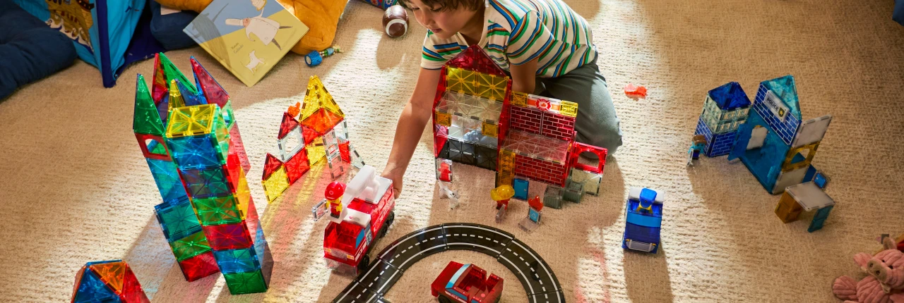 Magnetischer Baukasten Stadtzentrum 110 TeileBaue deine eigene magnetische Stadt voller Leben, Autos und Abenteuer!Willkommen im pulsierenden Zentrum der Fantasie! Mit dem MAGNA-TILES® Stadtzentrum-Set bauen Kinder ihre eigene Stadt – von Straßen und Häusern bis hin zu Balkonen, Treppen und Autos. K..
