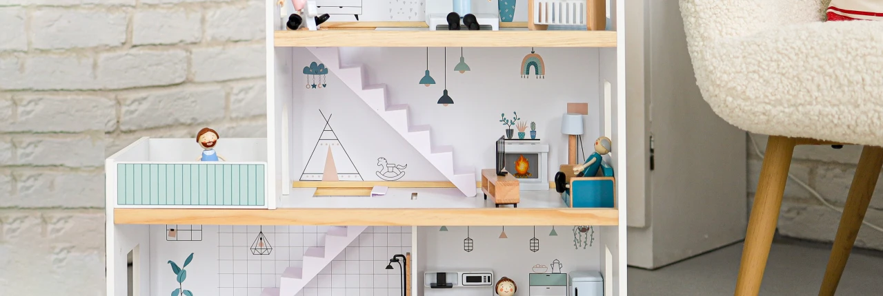 Entdecken Sie das zauberhafte Puppenhaus Villa, das mit seinen drei Etagen keine Wünsche offenlässt. Es umfasst ein Schlafzimmer, ein Esszimmer, eine Küche, ein Badezimmer und einen Balkon. In den liebevoll gestalteten Räumen wohnt eine Pu..