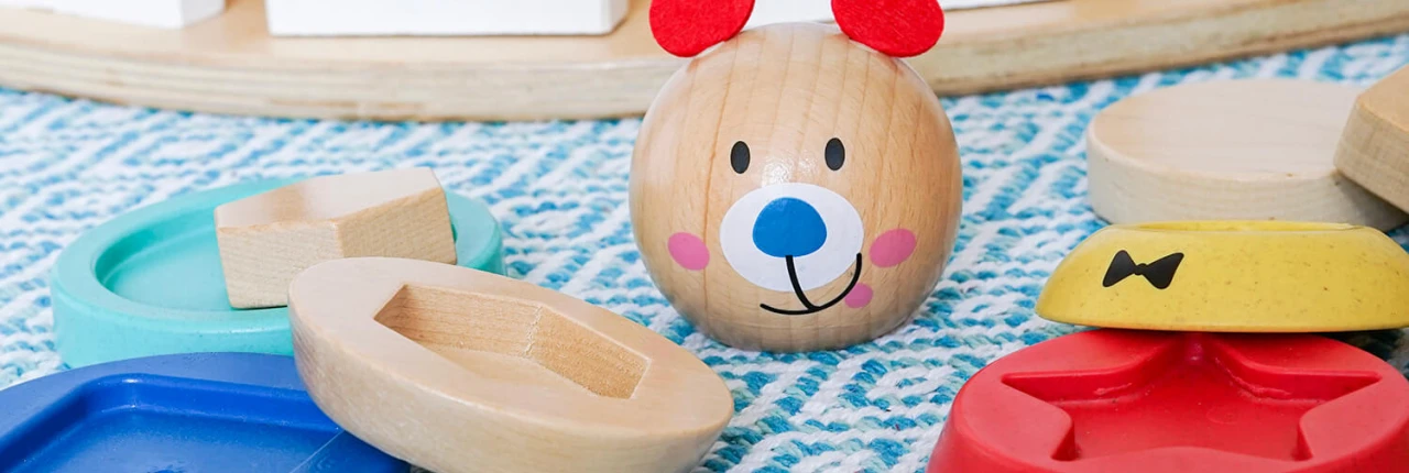Ein faszinierendes Spiel für Kinder, bei dem es darum geht, farbenfrohe Blöcke mit Löchern auf einer wackeligen Basis so zu platzieren, dass sie im Gleichgewicht bleiben. Das Set enthält drei aufsteckbare Tierköpfe ..