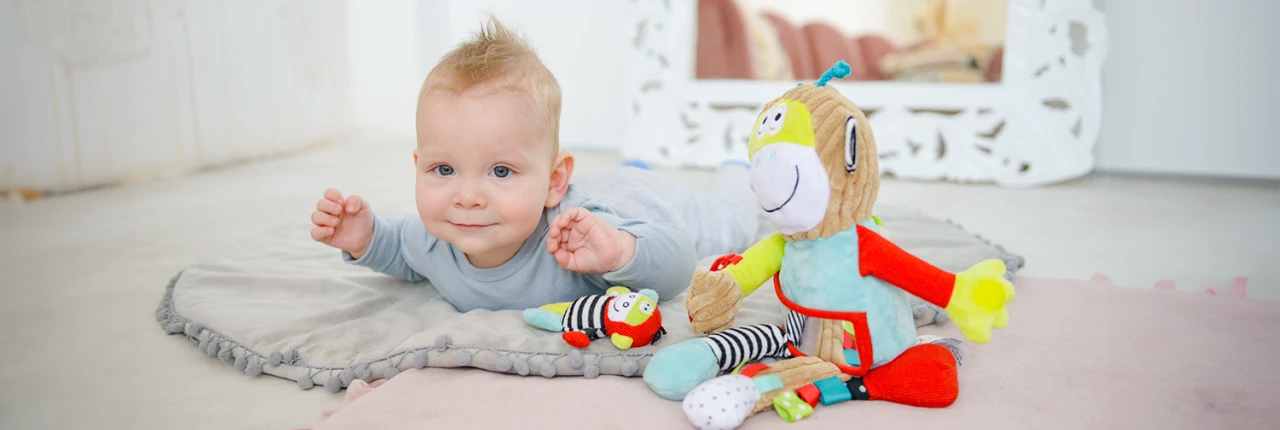 Der raschelnde TeddybärFlüster-Teddybär für die Kleinsten Ein weicher Teddybär zieht die Finger des kleinen Entdeckers an. Seine kontrastierenden Farben und sein sanfter Klang ziehen die Aufmerksamkeit der Kinder auf sich und stimulieren ihre Sehkraft. Das Spielzeug gibt einen sanften Klang von sich..